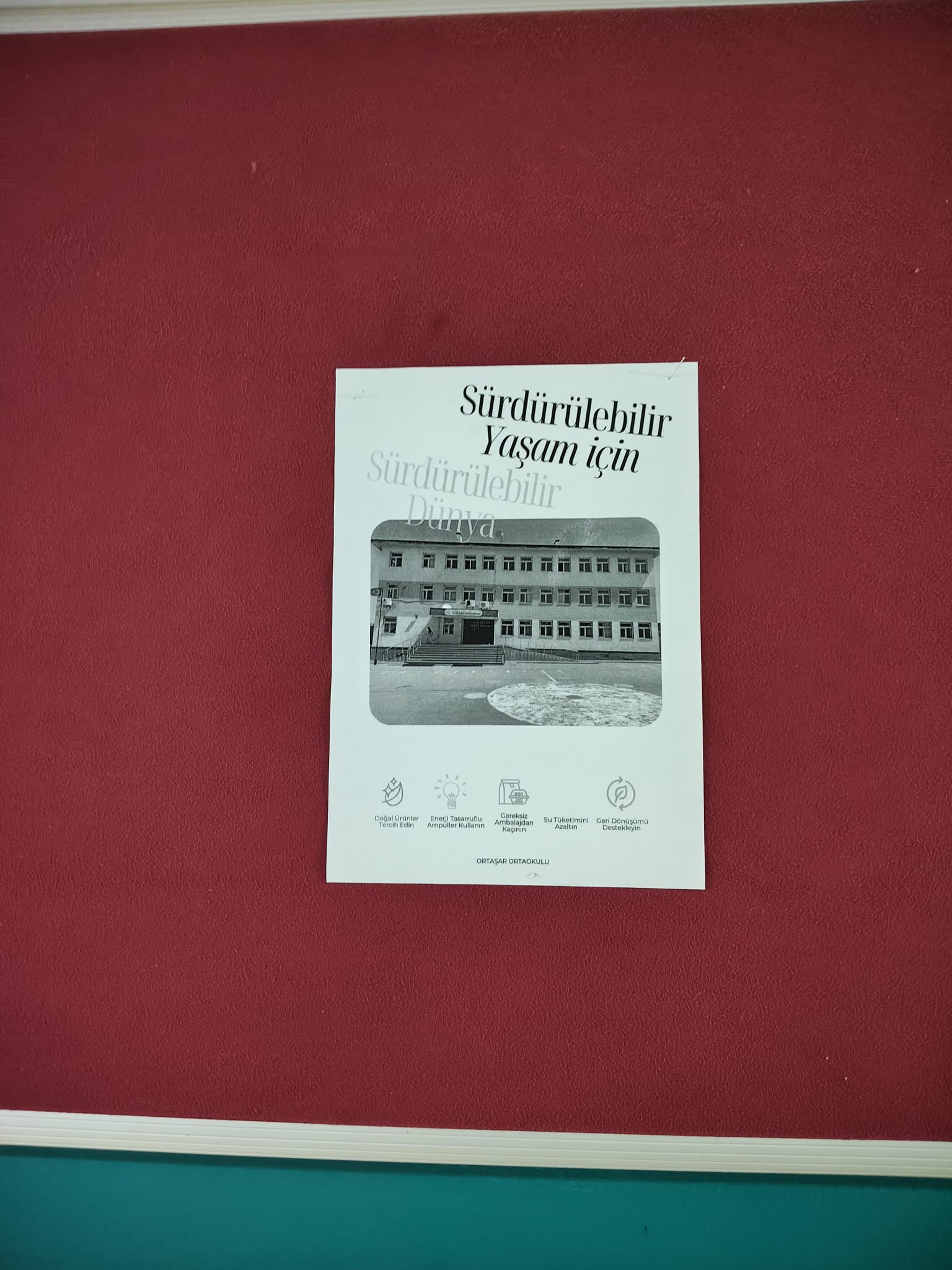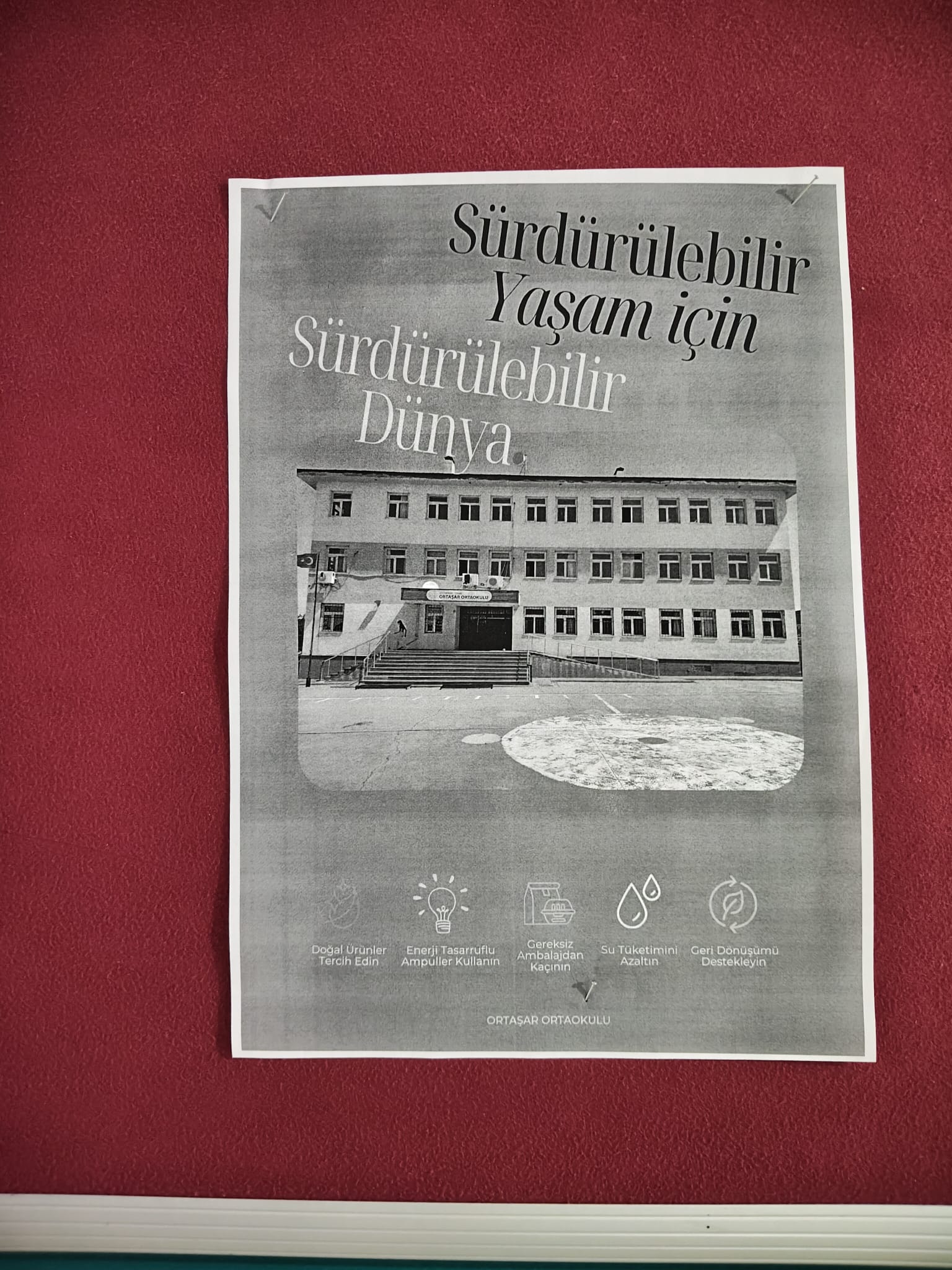 Öğrencilerimize bugünün ihtiyaçlarını karşılarken gelecek nesillerin yaşam hakkını ve kaynaklarını korumayı amaçlayan temelinde; doğaya saygı, kaynakların bilinçli kullanımı ve çevreye karşı duyarlılığını artırmak amacıyla hazırlanan posterler panolara asıldı