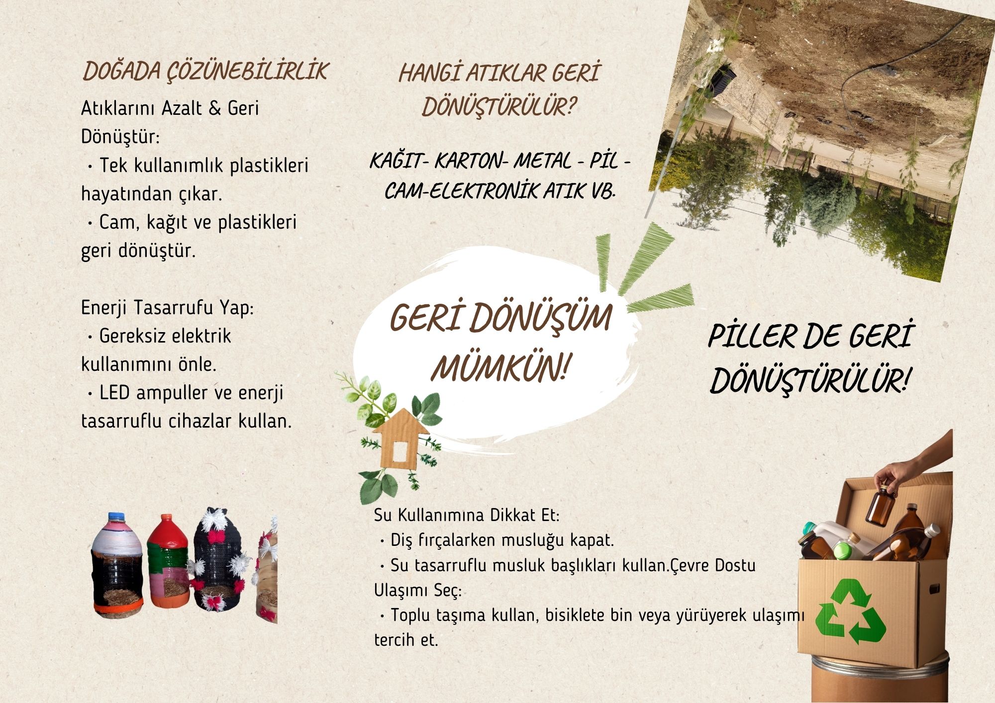 Geri dönüşüm ve çevre bilinci hakkında öğrencilerimize ve velilerimize dağıtmak üzere broşür hazırladık