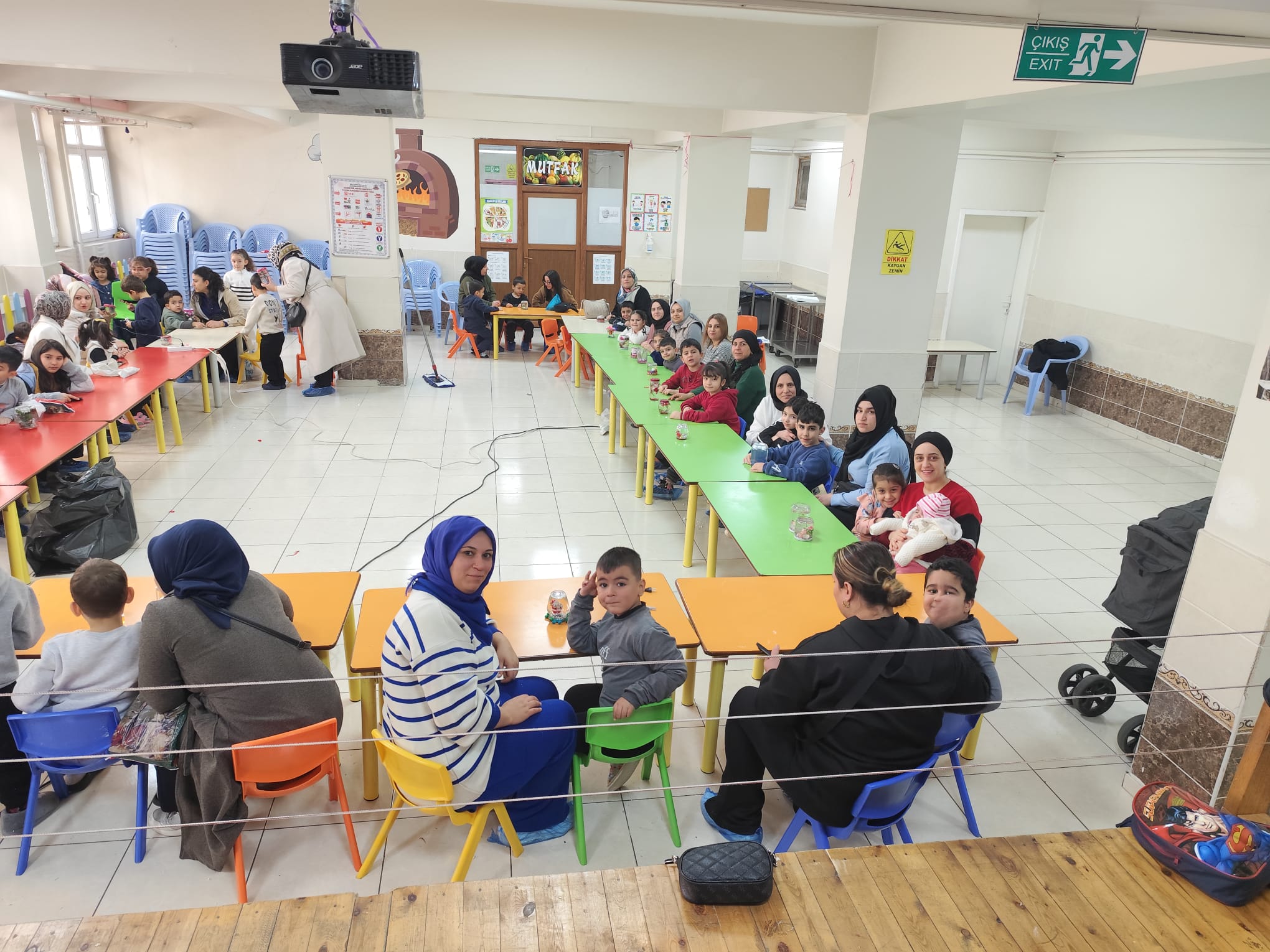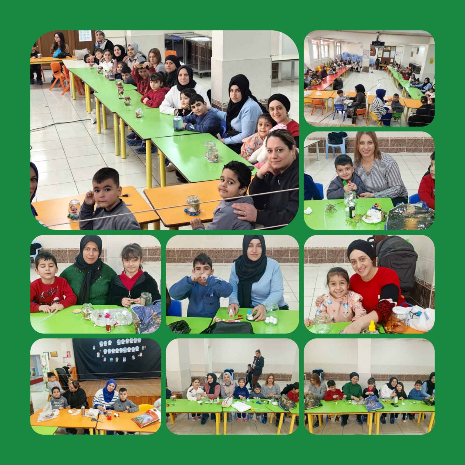 Veliler evden getirdikleri kavanozun içine sim, sabun, atık materyal ekleyerek çocukları ile birlikte Kar Küresi Etkinliği yaptılar.