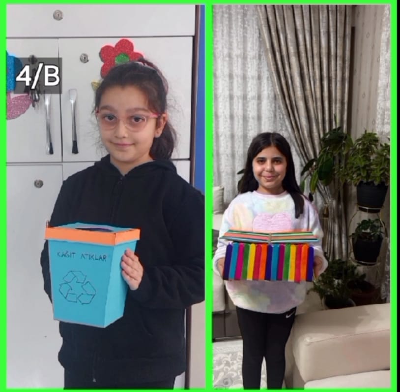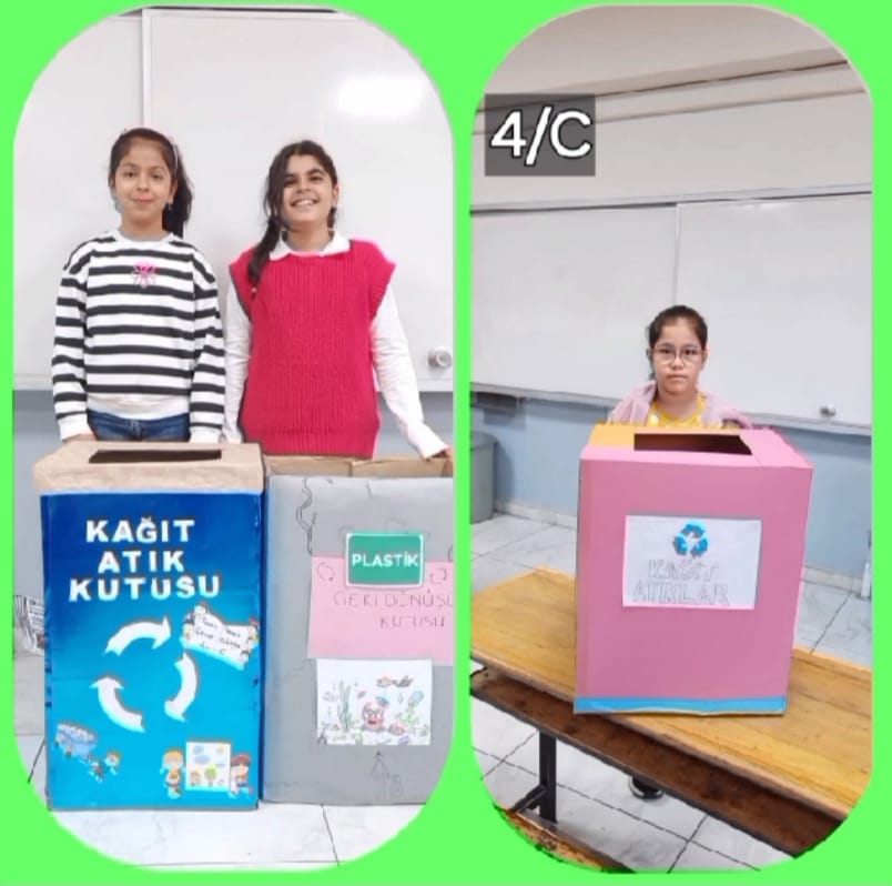 Atıkları azaltmak için ger dönüşüm kutuları tasarlayıp yaptık.