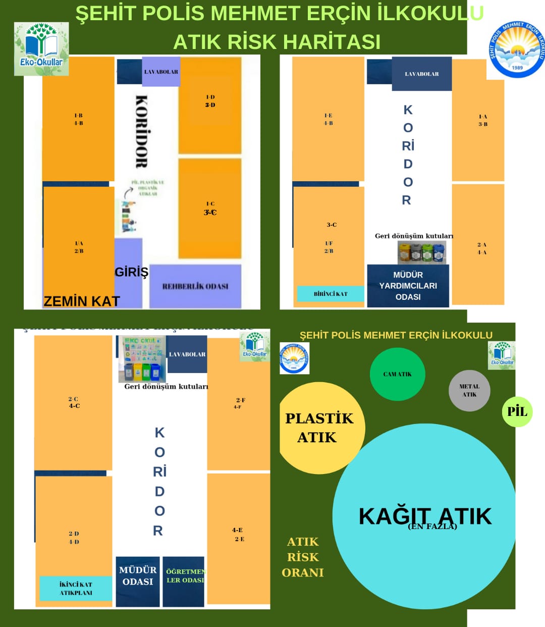 Okulumuzda atık azaltma çalışmaları yapiyoruz.Okulumuzun atık risk haritasını çıkardık.