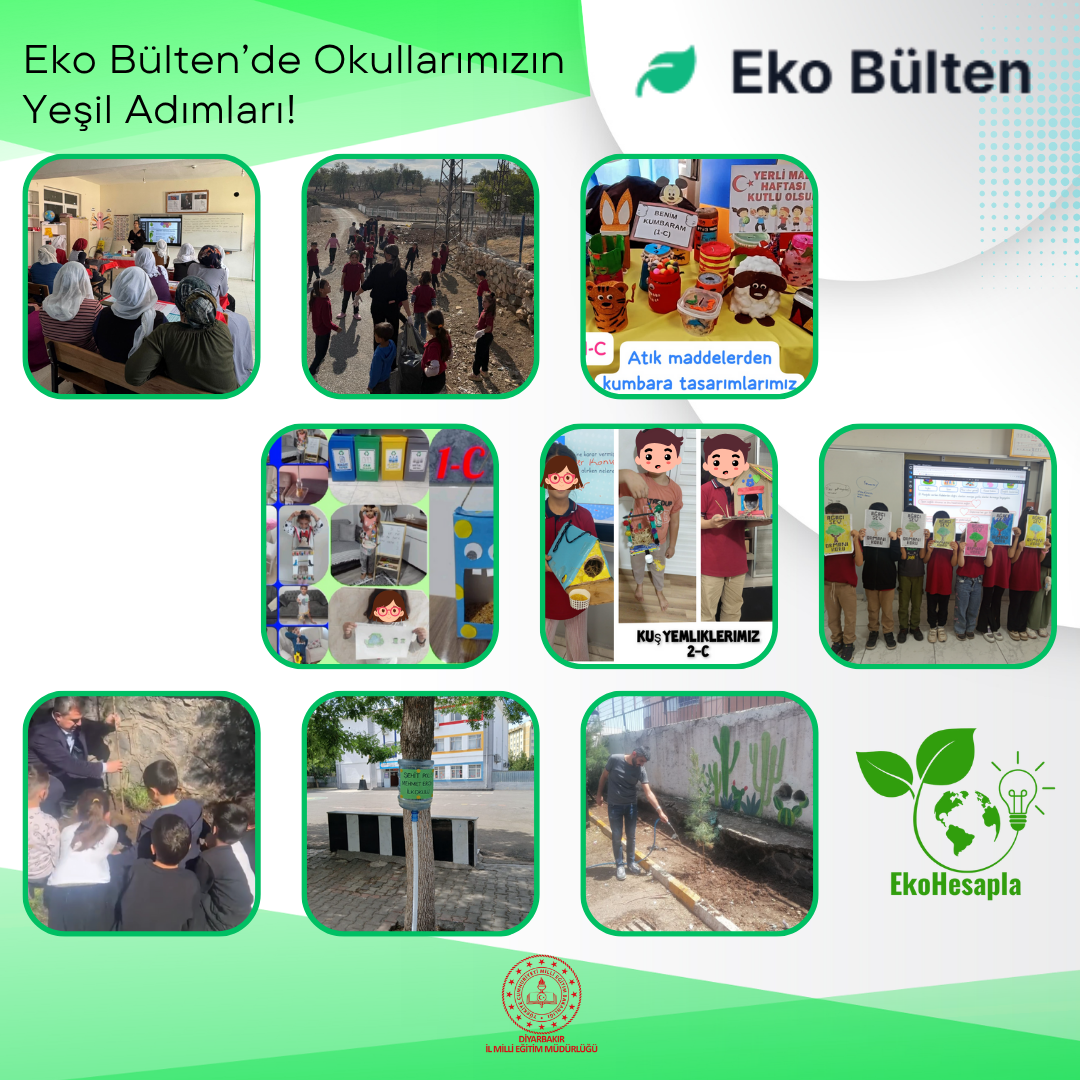 Eko Bülten, okullarımızın gerçekleştirdiği çevresel farkındalık etkinliklerini görünür kılan ve iyi örneklerin yaygınlaşmasını amaçlayan bir platform olarak dikkat çekiyor. Diyarbakır genelinde birçok okul; enerji verimliliği, geri dönüşüm, atık yönetimi ve doğa dostu yaşam alışkanlıklarıyla ilgili çalışmalarını bu alanda paylaşarak çevreye duyarlı bir eğitim kültürünün yaygınlaşmasına katkı sağlıyor.